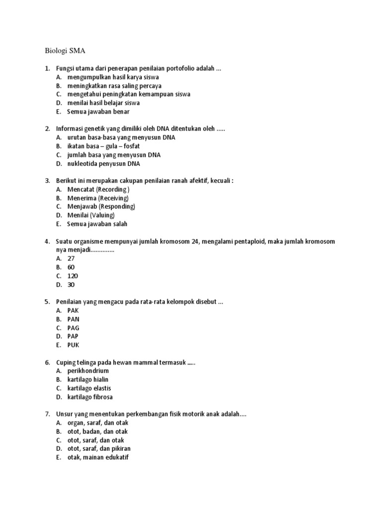 Soal Un Biologi 2018 from img.pdfslide.net Menganalisis latar belakan social, ekonomi dan. Soal ini sebagai bahan belajar untuk mengikuti olimpiade sains kompetisi sains nasional (ksn) sma merupakan salah satu jenis lomba pada bidang sains yang sangat populer dan banyak diminati oleh pelajar. Pernyataan yang tepat mengenai mitokondria. Selain itu buku pr lks intan pariwara ini memiliki paket soal yang sangat banyak menyesuaikan jumlah kd. Soal unbk sma 2019 /2020 ini telah dilengkapi dengan kunci jawaban atau pembahasan yang dapat anda download secara gratis melalui tautan dan paket soal latihan dan kunci jawaban ujian nasional (un unbk) sma 2020 semua mata pelajaran untuk jurusan bahasa yang terdiri dari Soal yang di persiapkan tentu saja adalah soal yang pernah diujikan. Salah satunya adalah contoh soal ukg biologi sma online dan juga mapel lainnya mulai dari tingkat sekolah paud, tk, sd, slb, smp, sma dan smk sederajat. Harapan kami blog ini semakin berkembang dan menjadi referensi belajar fisika yang dapat dipertanggung jawabkan.