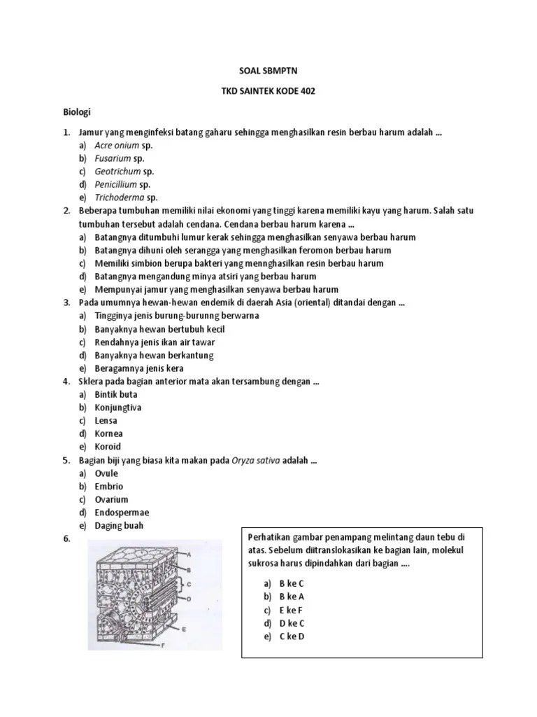 Kamu sedang mencari kumpulan soal biologi sbmptn 2018? Silahkan pelajari kumpulan contoh soal utbk sbmptn 2021 lengkap dengan pembahasannya. Download soal sbmptn tkd saintek tahun 2018 kali ini kita . Ini dapat anda gunakan sebagai latihan persiapan sbmptn dan simak ui tahun 2018. Soal biologi sbmptn 2016, utbk sbmptn, sbmptn 2022, bimbel masuk ui,. Pembahasan soal sbmptn 2018 saintek kode : Quipper blog akan membahas latihan soal sbmptn biologi tkd saintek 2018. Kunci jawaban soal sbmptn 2018 tkd saintek kode soal 459. Belajar berlatih simulasi tes seleksi masuk ptn 2017/2018. Tes kompetensi dasar (tkd) terdiri dari:. Soal utbk biologi dan pembahasan 2018/2019 download. Jamur yang menginfeksi batang gaharu sehingga menghasilkan resin berbau harum adalah … a) acre onium sp. Dasar saintek (tkd saintek) terdiri atas kemampuan matematika, biologi, kimia, .